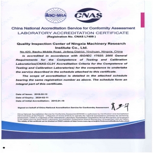 公司是國家高新技術企業、國家創新型試點企業、國家知識產權優勢企業、寧夏知識產權示范企業、自治區專精特新示范企業、銀川市小巨人企業。公司擁有國家級模壓淬火技術與裝備國家地方工程實驗室寧夏裝備制造業技術服務與質量檢驗檢測服務平臺”,取得了CMA和CNAS資質,可向社會出具檢驗檢測報告;自治區級寧夏模壓淬火機床工程技術研究中心企業技術中心2003年通過ISO9001-2000質量體系認證,2014年通過CNAS國家實驗室認證,2017年通過國家質量/環境/職業健康安全管理體系認證。